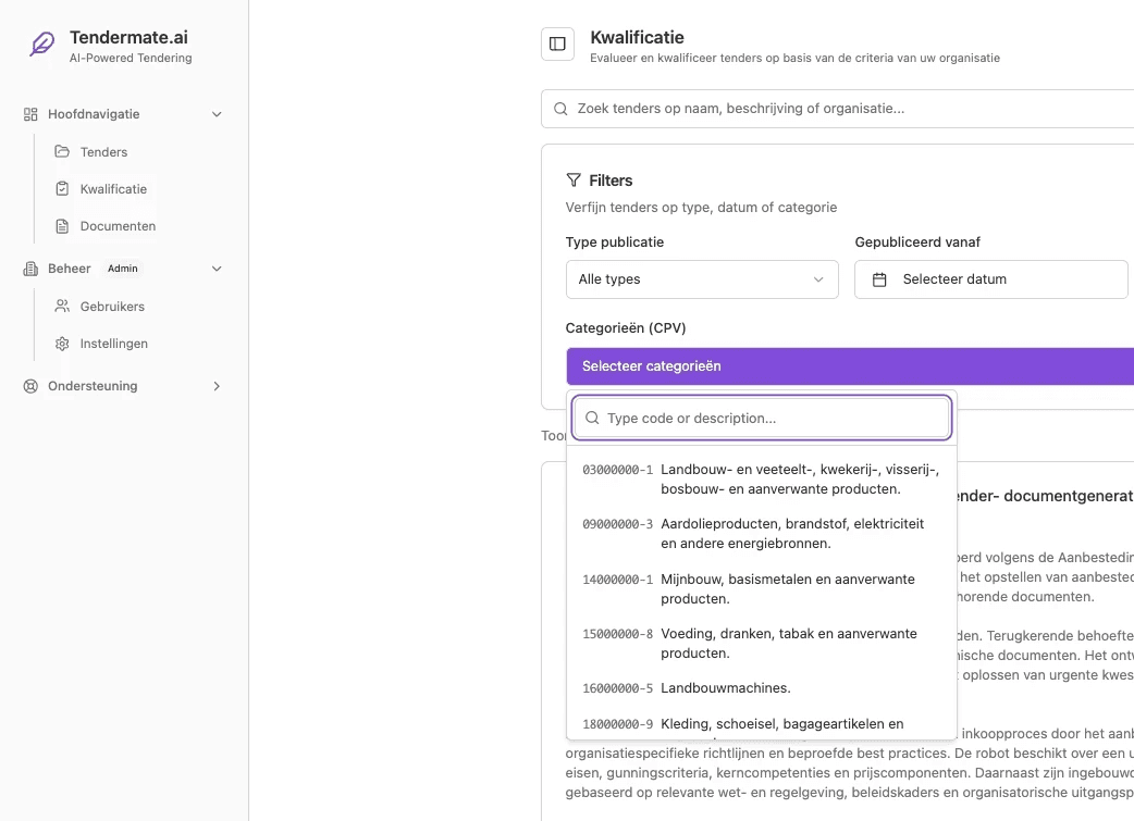 de Installatietechniek, de Zorg, de Staffing of een andere sector; Tendermate.ai helpt je verder.